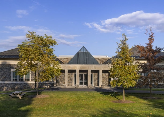 Designed by RAMSA (Robert A.M. Stern Architects), Olin Hall at Colgate University in Hamilton, New York, transforms academic collaboration through its innovative layout and cohesive materiality, enhancing interdisciplinary learning and community interaction.