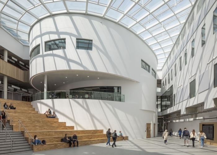 HLM Architects’ The Wave at the University of Sheffield exemplifies sustainable innovation, uniting social science departments in a light-filled, collaborative space that harmonizes with its green surroundings while achieving BREEAM Outstanding status.