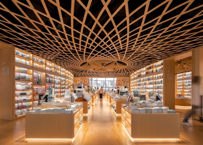 The Mi bookstore project in Shenzhen focuses on creating a tranquil sanctuary for exploration with biophilic design elements, thematic zones like Book, Café, Kids, and Retail, offering a sensory-rich experience.