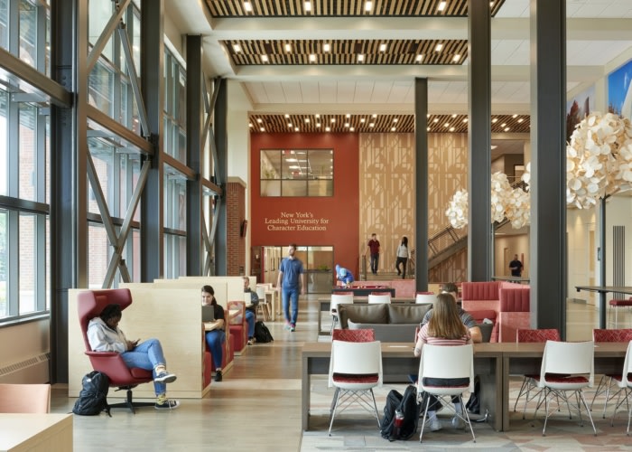 SWBR’s Golisano Community Engagement Center at Roberts Wesleyan University in Rochester, serves as a dynamic hub promoting community interaction and student resources through its thoughtful blend of traditional and modern design.