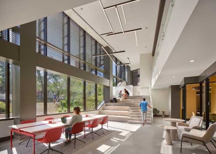 LMN Architects designed Clifton Court Hall at the University of Cincinnati, creating an interconnected space that brings together various academic units and serves as a hub for collaborative learning and research.