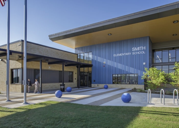 Pfluger Architects designed Smith Elementary School in Austin, as a modern, community-centered learning environment that fosters connection to nature while prioritizing student wellness and accessibility throughout its innovative spaces.