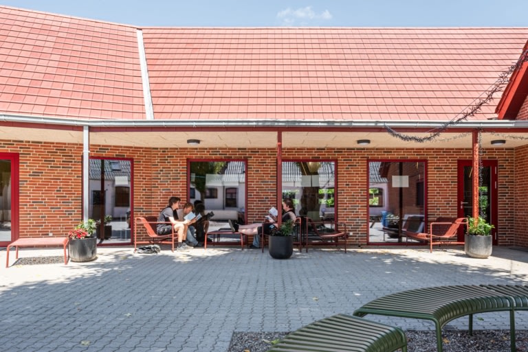 Dybbøl Efterskole - Dining Hall View Project ZENI arkitekter Exterior, Mounted Cylinder / Round, People