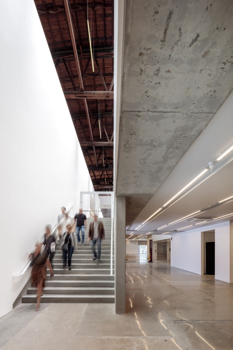 ArtCenter College of Design - Mullin Transportation Design Center (MTDC) View Project Darin Johnstone Architects Joshua White Hallway / Corridor, Linear Pendant, Mounted Linear, People, Stairs