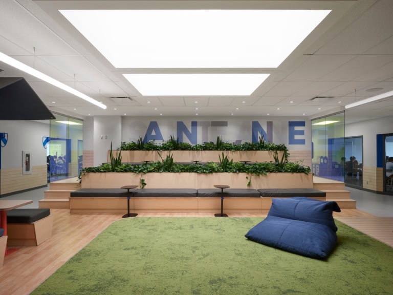 Collège Sainte-Anne's Marie Esther Pavilion View Project Taktik design Maxime Brouillet Glass Walls, Logos & Branding, People, Plants, Stairs, Wall Graphics