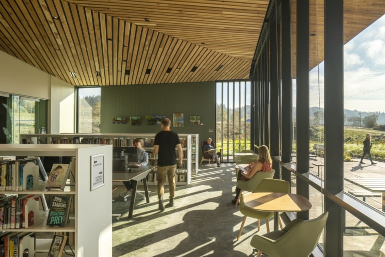Woodland Community Library View Project Hacker Lara Swimmer Tonic by Watson Chairs, Library, People, Signs & Wayfinding