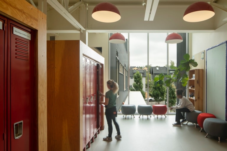 Giddens School and Lake Washington Girls Middle School View Project Graham Baba Architects Lara Swimmer lockers, Ottomans / Poufs, Plants, Signs & Wayfinding