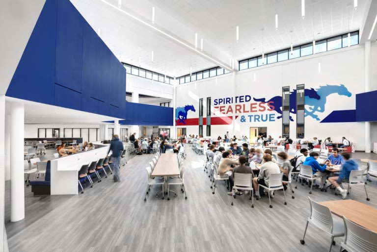 J.J. Pearce High School View Project Glenn|Partners Charles Davis Smith Doni Seating by KIStrive Seating by KI Banquette Seating, Chairs, Column, Hallway / Corridor, Logos & Branding, Wall Graphics