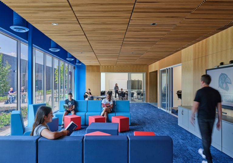 Washburn Rural North Middle School View Project Multistudio Michael Robinson Hallway / Corridor, Logos & Branding, Ottomans / Poufs, Sofa / Modular Lounge, Wall-Mounted Display, Whiteboard