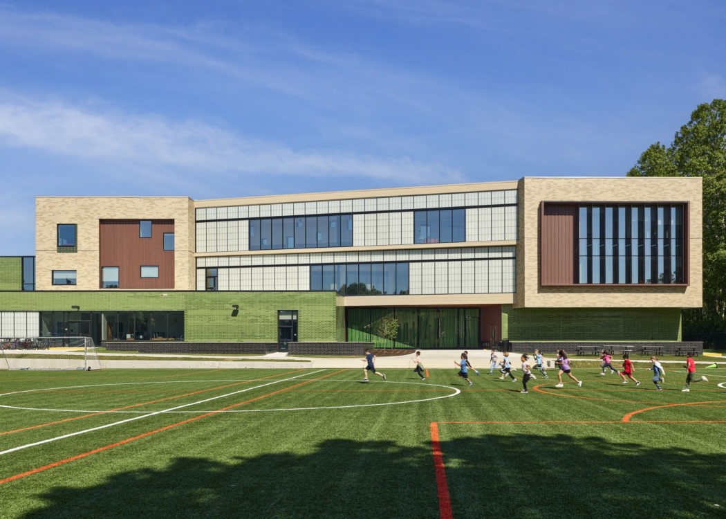 The new three-story design targets net zero energy and is driven by the need to do more with less. The efficient design increases student capacity and maximizes outdoor space – a prized and finite community asset – by minimizing the building footprint and incorporating underground parking. Alexandria’s Green Building Initiative – the city’s commitment to sustainably approach public buildings – is integral to the design, as it places a focus on energy use reduction, greenhouse gas emission reductions, water efficiency, and indoor environmental quality in design. The transformed site celebrates urbanization in Alexandria, strengthens connections in and around the neighborhood, and integrates many aspects of resiliency. Engagement was key to the process. DLR Group infused the ideas and desires of stakeholders and community members to give the students an authentic space that reflects the community they are part of.