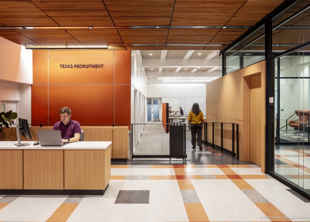 McKinney York Architects’ Texas Recruitment project at The University of Texas at Austin revitalizes the historic Main Building, creating a warm, student-centered environment that enhances accessibility and fosters success.